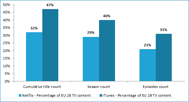 Netflix and iTunes pan-European catalogue – Share of EU 28 TV content