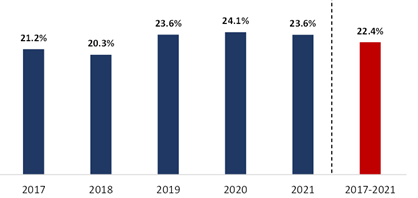 Pourcentage de réalisatrices par film et par année de production (2017-2021)