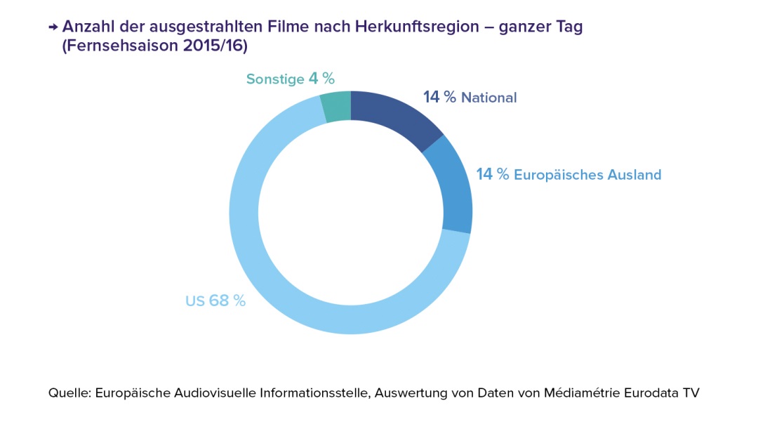 - Der Anteil von 28 % an europäischen Filmen teilt sich in 14 % nationale und 14 % nicht nationale europäische Filme.