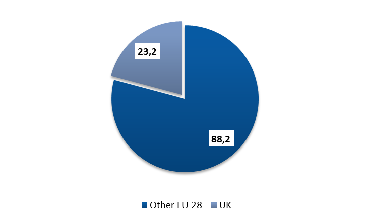 Mit 12% der Fernsehhaushalte hat das Vereinigte Königreich einen Anteil von 21% am audiovisuellen Markt der EU28.