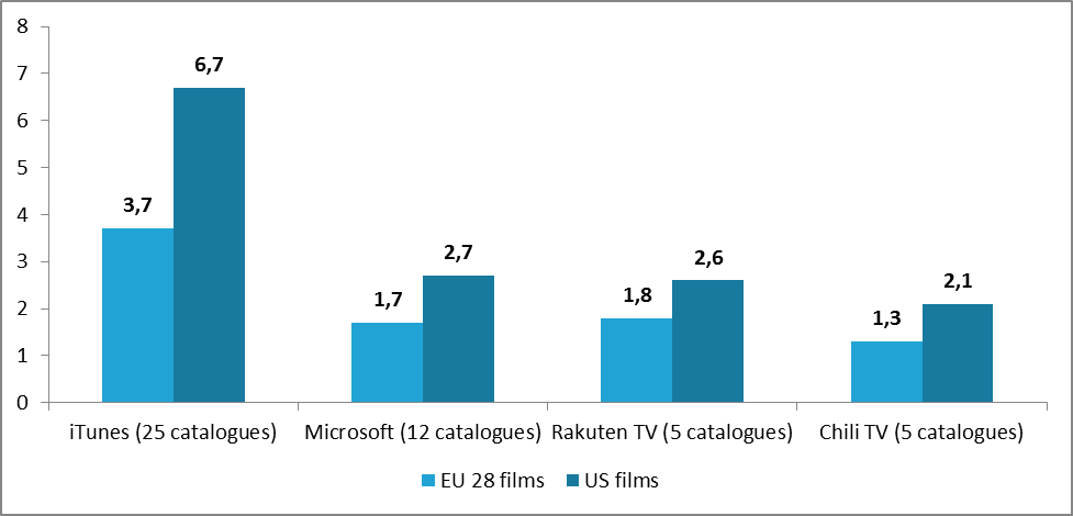 - Der iTunes-Katalog enthält im Durchschnitt weniger EU-Filme (24 %), von denen lediglich 4 % nationale Filme sind;