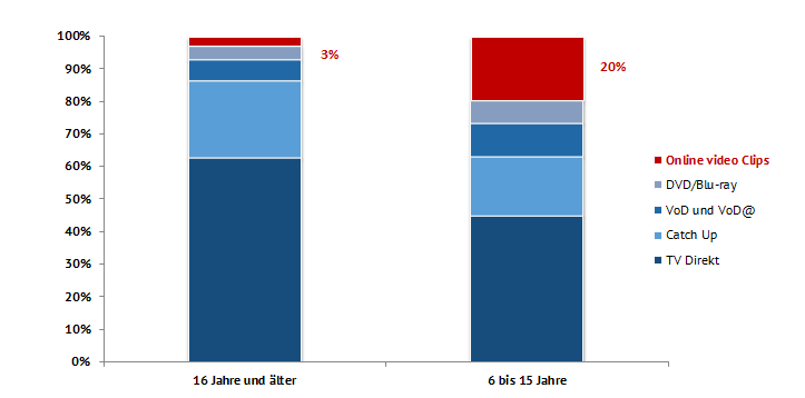 - Sechs- bis Fünfzehnjährige rund 20 % der Zeit, die sie vor dem Bildschirm verbringen, Onlinevideoclips schauen,