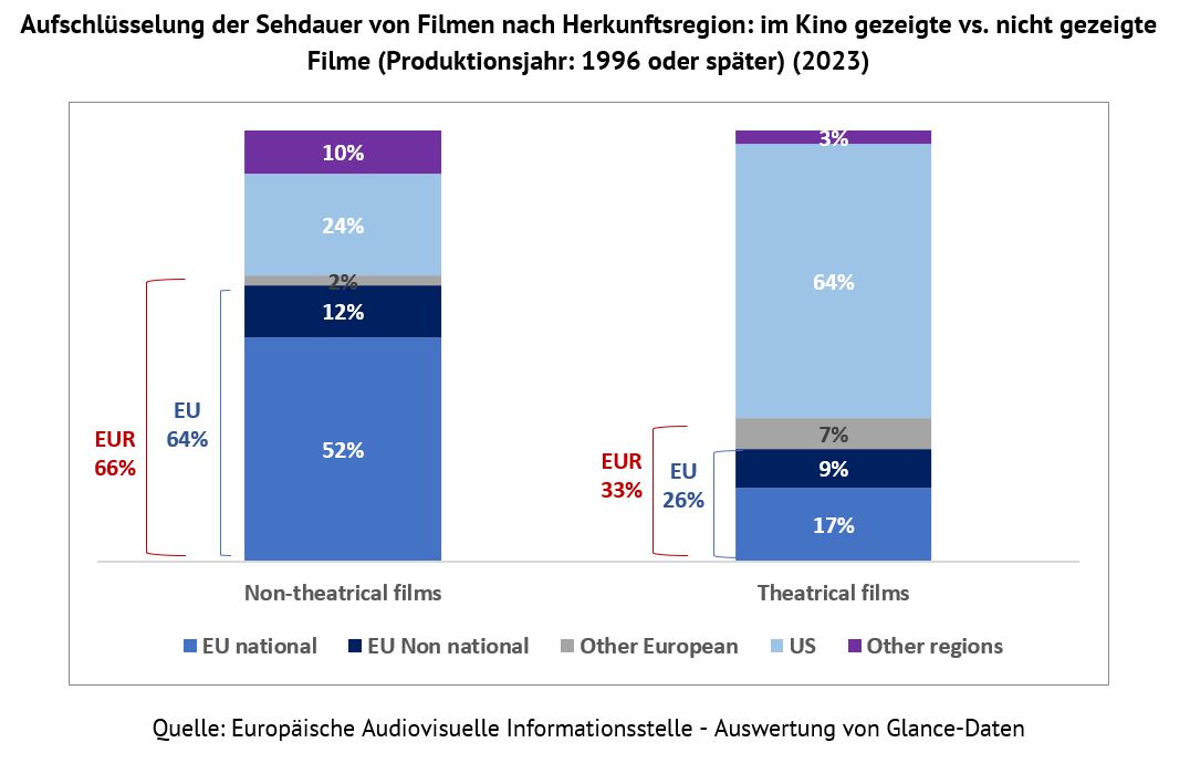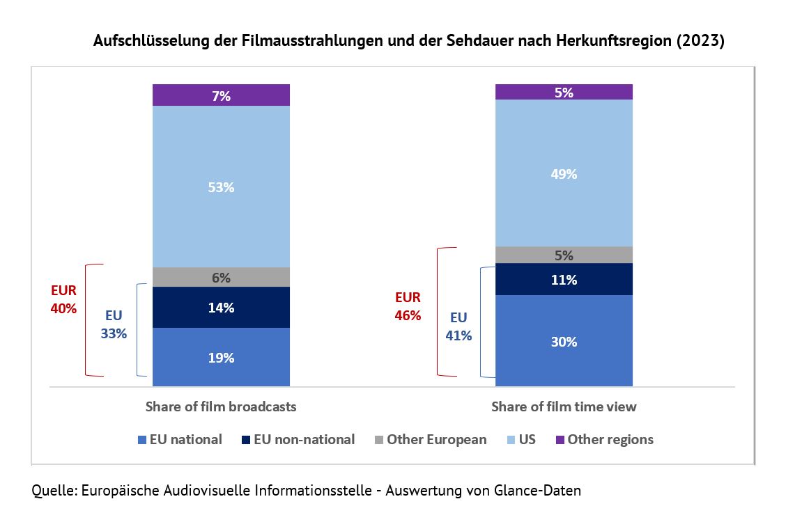 Betrachtet man nur im Kino gezeigte Filme, so entfallen auf EU-Filme lediglich 26 % der Sehdauer.