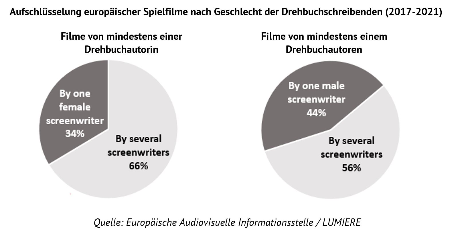 Aufschlüsselung europäischer Spielfilme nach Geschlecht der Drehbuchschreibenden (2017-2021)