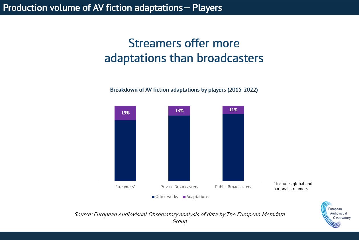 - Streamers offer more adaptations than broadcasters (19% for streamers, 13% for private and 11% for public broadcasters).
