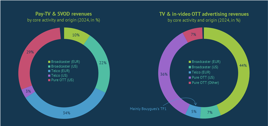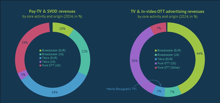 The SVOD market accounted for around 40% of combined pay-TV & SVOD revenues and was primarily represented by US streamers. Within the overall pay-AV service market, however, it was traditional players, driven either by their telecoms or broadcasting arm, that earned 70% of the revenues.