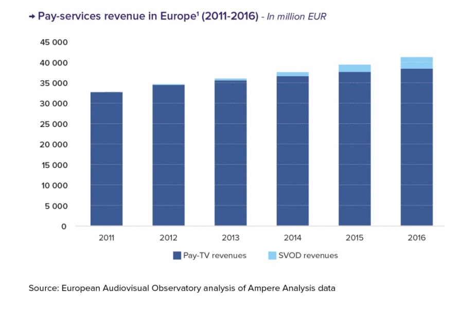 - Pay-television revenues increased by 2.8% in Europe in 2016, the lowest growth rate since 2012