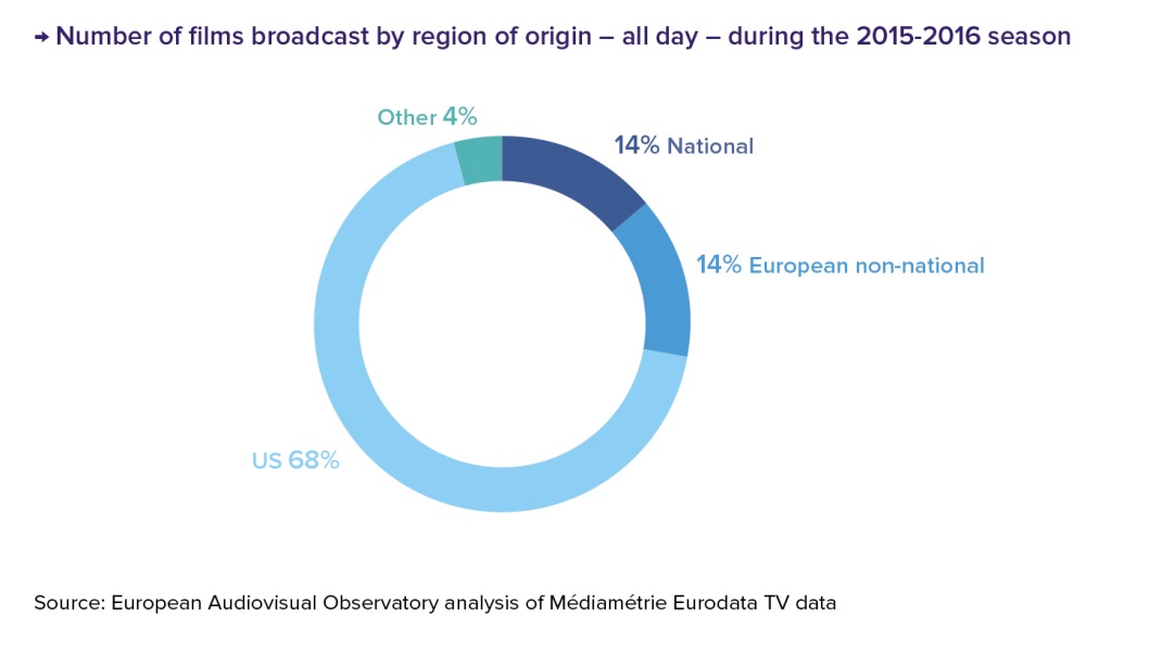 - The 28% European film share breaks down into 14% national films and 14% European non-national films.
