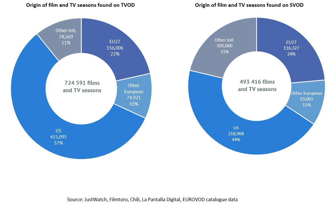 The TV content data is based on JustWatch data from 307 SVOD catalogues in 19 EU countries and on 49 TVOD catalogues from 13 EU countries collected in May 2021.