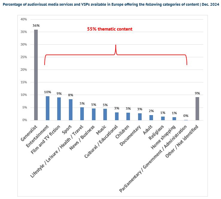 Over 50% of all audiovisual media services and VSPs in Europe have a thematic programming focus