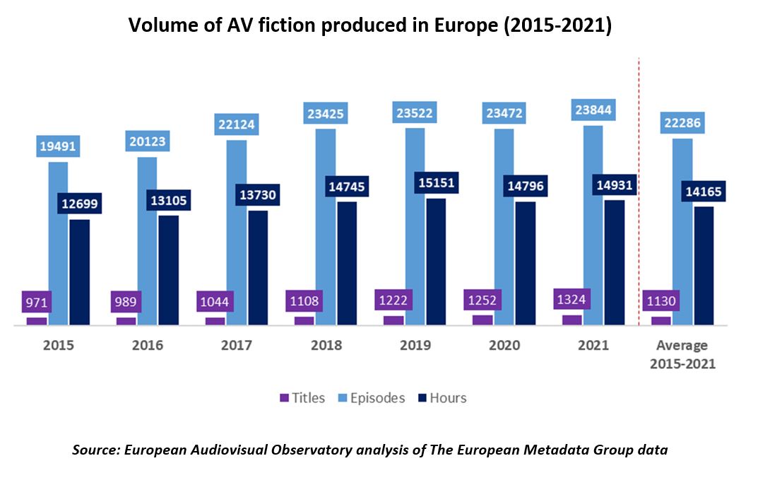 - Over 1 100 titles (1 title : 1 TV film or 1 series season) 22 000 episodes and 14 000 hours of fiction are produced each year in Europe, but the 2020/2021 COVID-19 crisis halted growth.