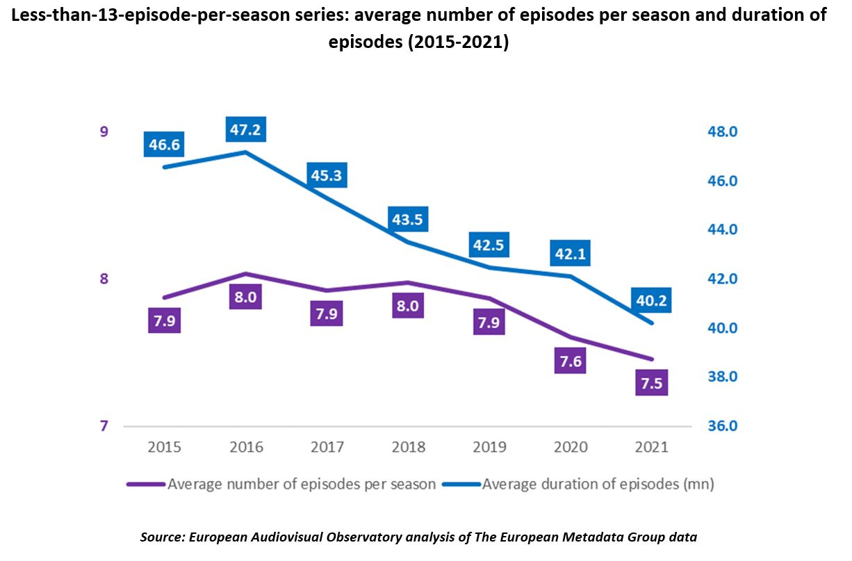 Less-than-13-episode-per-season series: average number of episodes per season and duration of episodes (2015-2021)