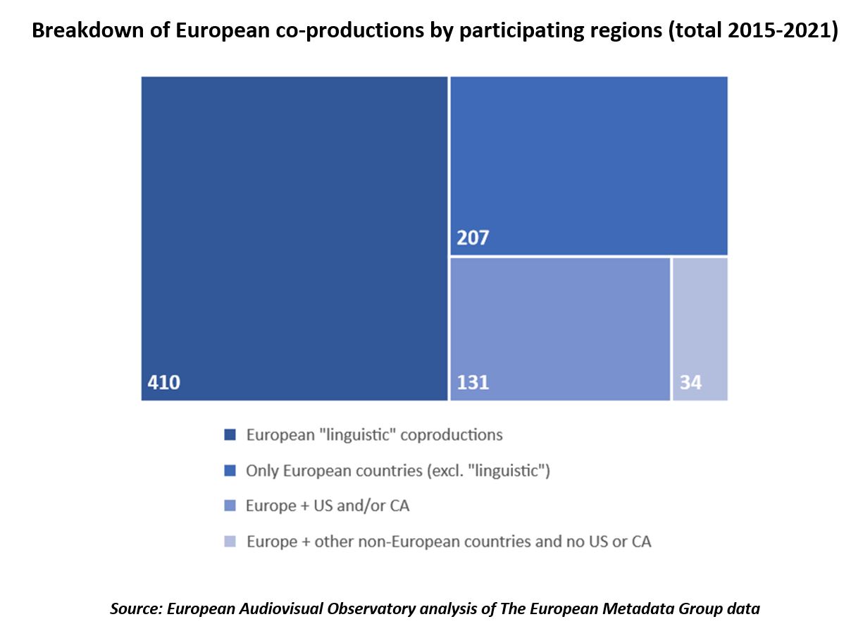 Breakdown of European co-productions by participating regions (total 2015-2021)
