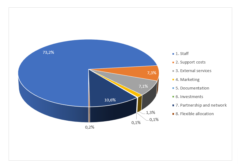 The work of the Observatory consists predominantly in the gathering and processing of data and information. This core activity is extremely labour intensive and depends on the knowledge and expertise of highly specialised staff. Accordingly, a significant amount of expenditure relates to staff costs (see the corresponding category).
