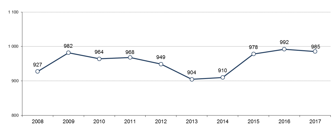 On the occasion of the 68th Berlin International Film Festival the European Audiovisual Observatory releases its first estimates for European cinema attendance in 2017. In line with the high levels observed in the previous two years, the Observatory estimates that total admissions in the European Union decreased only slightly by 0.7% to 985 million tickets sold in 2017. While this is 6.6 million less than in 2016, it still represents the second highest admission level registered in the EU since 2004. 2017 results hence confirm the regained strength of the European theatrical market which had been declining from 2010 up until 2014. If you include non-EU territories in Europe, 2017 actually saw the highest admission levels of the past decades with estimated record admissions of over 1.29 billion tickets.