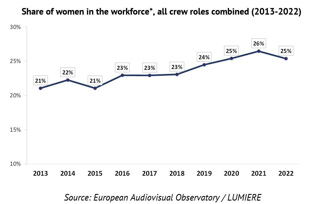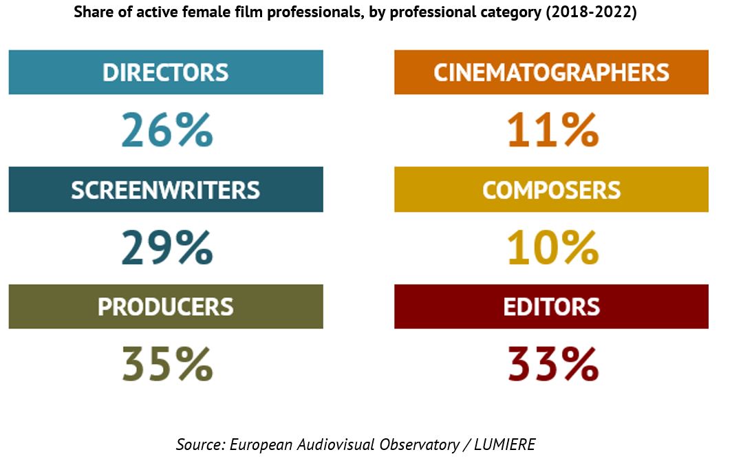 - Women are still largely underrepresented in the workforce. Only 26% of directors of European feature films are female.