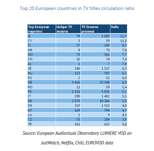 Data from LUMIERE VOD on TV content (for 46 European countries and analysed in November 2020) shows: