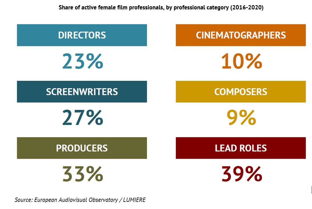 - Women represented less than one film director out of four in Europe.