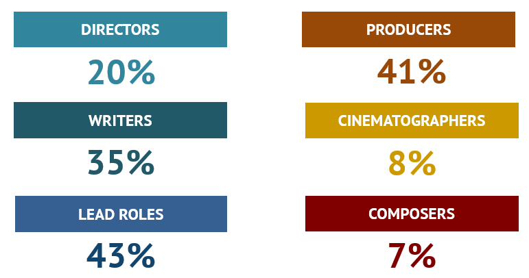 - For lead roles, data limits made the analysis more delicate (This category analysis builds on IMDB information which provides generally the names for 4 actors, although sometimes even more than 4 names are given. A sample test by the Observatory seems to prove that these 4 names correspond to the first four lead roles). The results were not clear enough to understand who is playing the principal roles. It was clearly an activity performed in groups and teams appeared quite gender balanced.