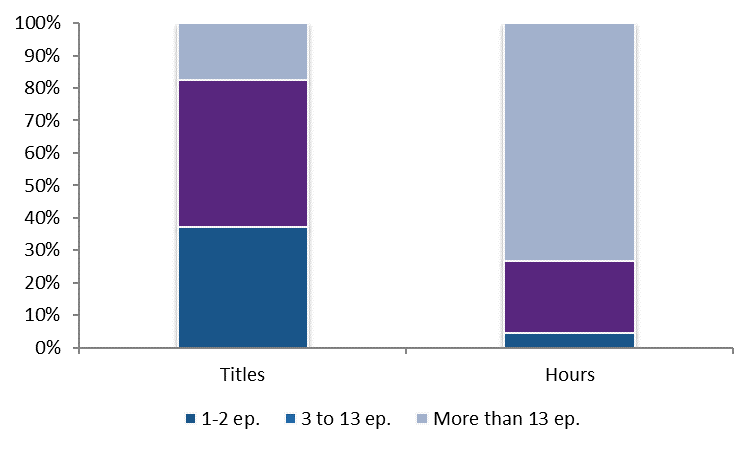 When considering the 3-13 episode TV series, the United Kingdom, Germany, France, Italy and Spain are the largest producers in terms of hours. And Germany is by far the major producer of TV films.
