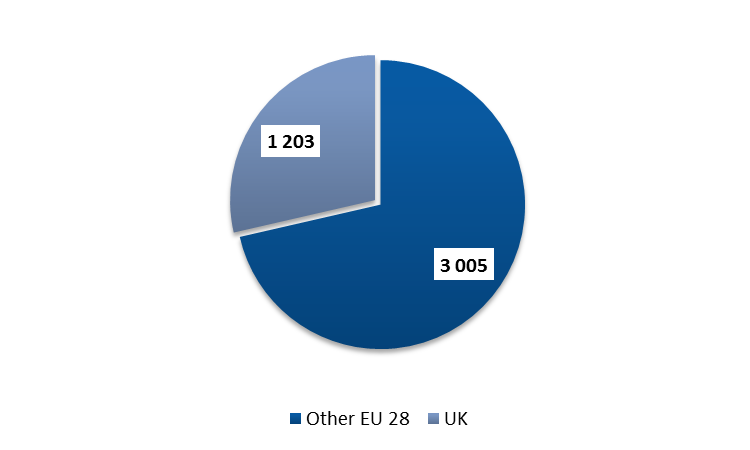 - 1,203 TV channels out of 3,005 in the EU (28) are based in the UK