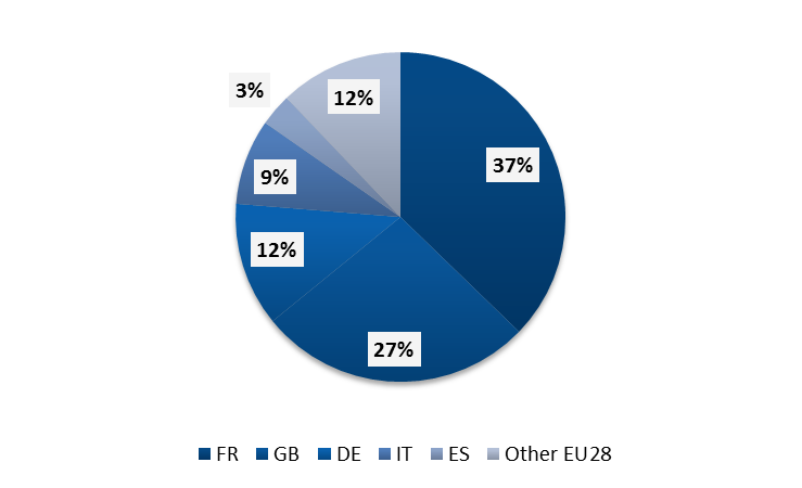 As far as VOD exploitation of European films is concerned, the UK ranks as the runaway No. 1 (ahead of France) for the number of titles exported to other EU28 countries on TVOD.