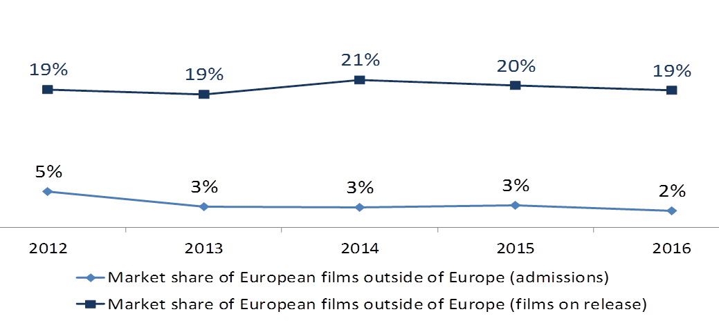 Figure 3. Market shares of European films outside Europe 2012-2016
