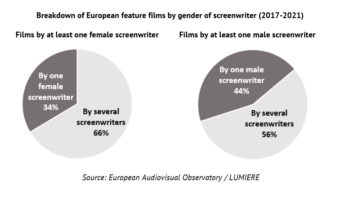 Breakdown of European feature films by gender of screenwriter (2017-2021)