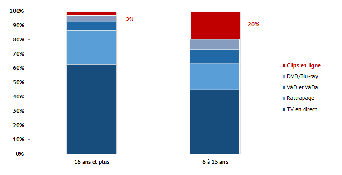 - Les enfants de 6 à 15 ans consacrent environ 20 % du temps passé devant les écrans à regarder des clips vidéo en ligne