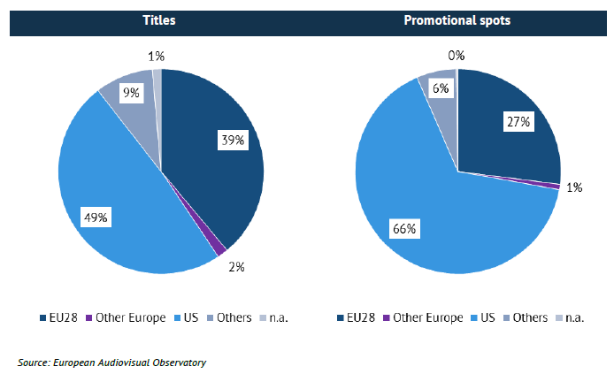 - Les films européens les plus promus le sont principalement dans leur pays d'origine, à la différence des films américains qui bénéficient d'une forte présence et d'une promotion intensive dans de nombreux pays et services.