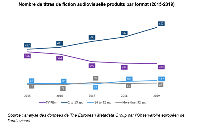 - * Le pourcentage de séries de 2 à 13 épisodes a augmenté, tandis que le nombre de téléfilms a baissé.