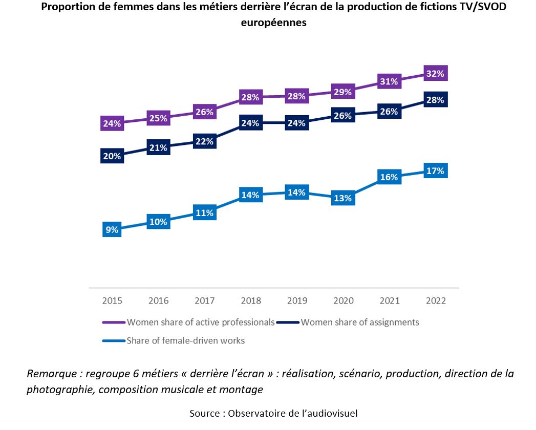 Télécharger “Female professionals in European TV/SVOD fiction production 2015-2022 figures” ici